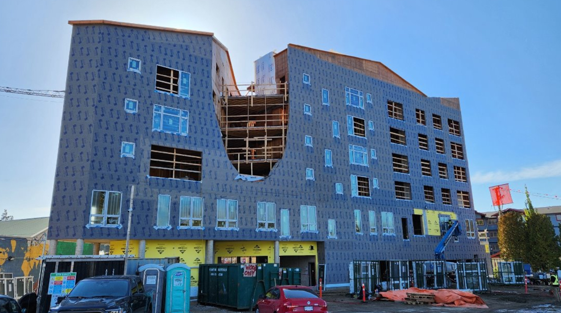 A 79-unit, five-storey wood-frame building delivering affordable, well-designed rental homes under the Housing Hub’s Provincial Rental Supply Program. Developed in partnership with the CMHC Affordable Rental Program for middle-income households.